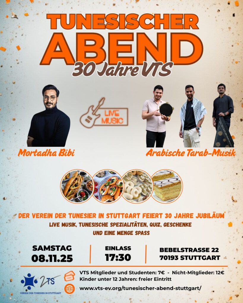 Unser Verein der Tunesier in Stuttgart feiert sein 30-jähriges Jubiläum! Drei Jahrzehnte voller Begegnungen, Solidarität und Stolz auf unsere Wurzeln 💪❤️